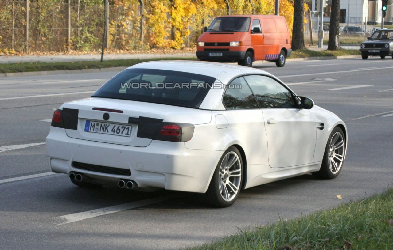 Yes, another spy photos of the new BMW M3 Convertible but this time the color is different because in the last spy photos the car was blue and this one is white as you can see. Talking about the colors, if I would have enough money for this new BMW M3 Convertible, I would choose the white one because it’s more luxury.