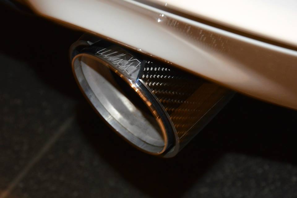 Outside, the Ms reflect the front bumper with the larger air intakes or the front spoiler lip, new gloss black with the M colors, carbon fiber side skirts, side stripes, while at the rear, the model is wearing the M fascia fitted with the rear diffuser and tailpipes. Along that, the Akrapovic sport exhaust system complements the entire rear end.