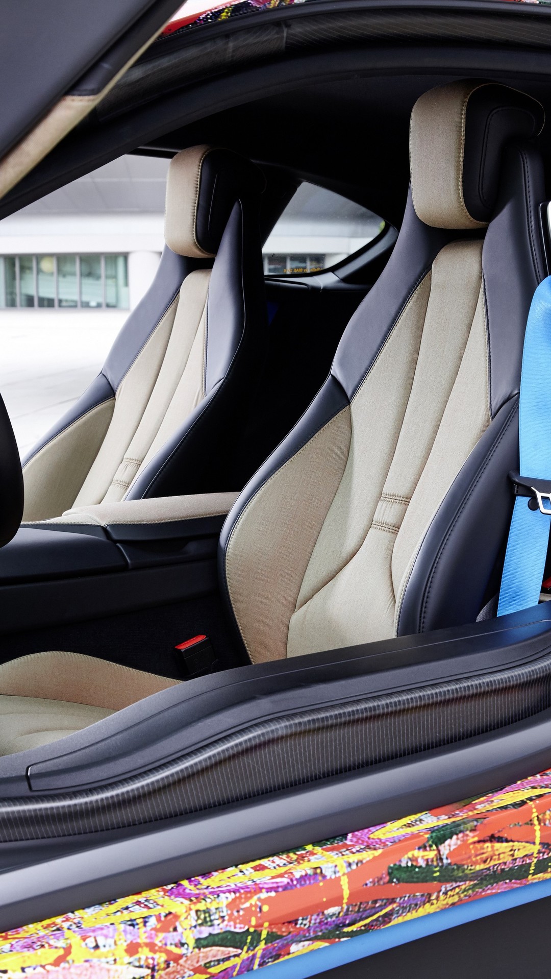 Besides the livery and the alloy wheels, this BMW i8 has also received some nice touches inside the cabin. GIC has added the special upholstery courtesy to Solaro, with iridescent reflections when being hit by light.