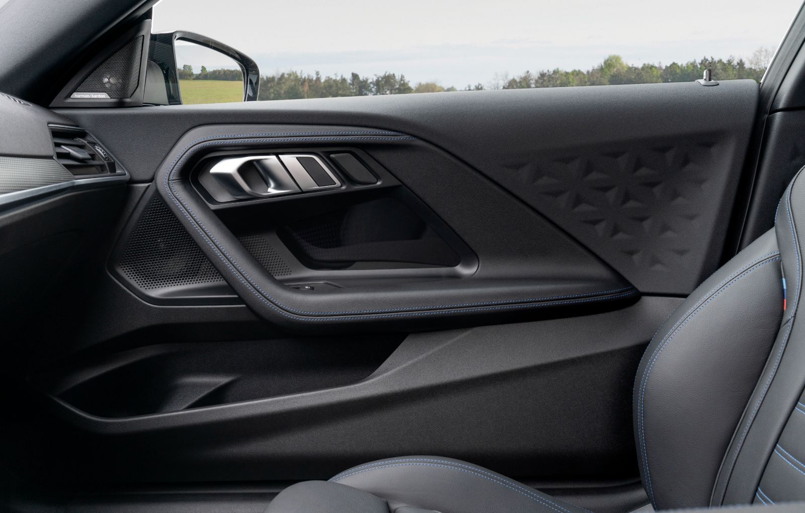 Passengers will find inside sports seats, leather-wrapped sports steering wheel, fabric / Sensatec upholstery, Dark Graphite ornaments, three-zone air conditioning, BMW Live Cockpit system with 8.8-inch central display and 5.1-inch screen integrated into the instrument panel.